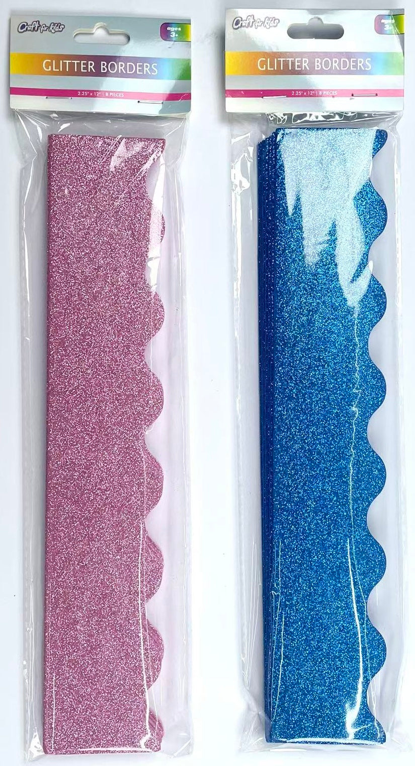 CFK-1585 - 8 pc glitter foam borders in assorted colors.- ASSORTED COLORS $0.75/pc