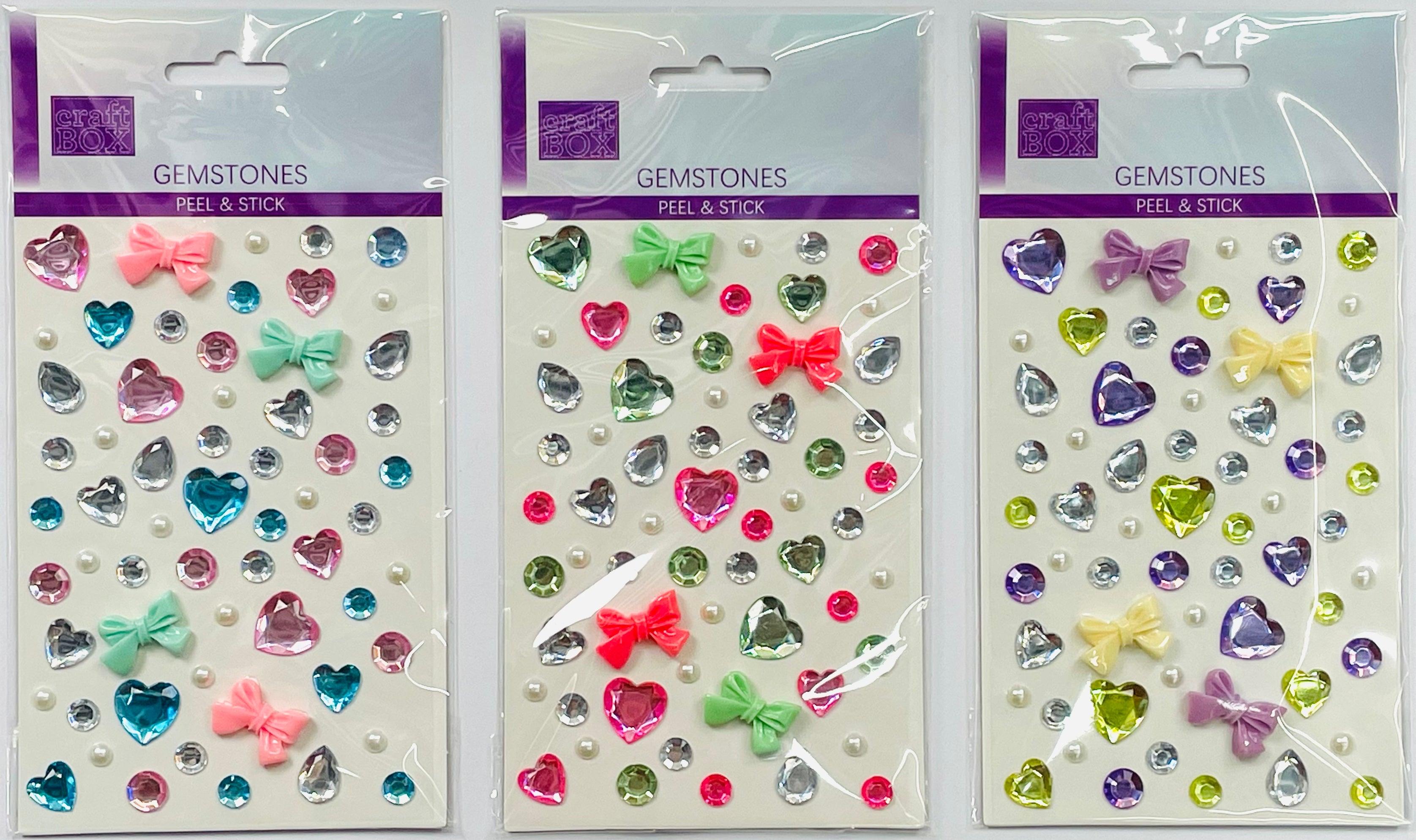 CRAFT BOX - ADHESIVE GEMS - ASSORTED SHAPES W/ BOW